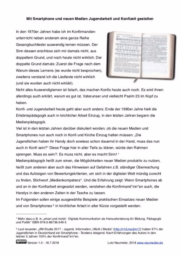 Das lässt sich auch in der Pädagogik nutzen wenn Jugendliche mit ihren Geräten alte und neue Geschichten erzählen.